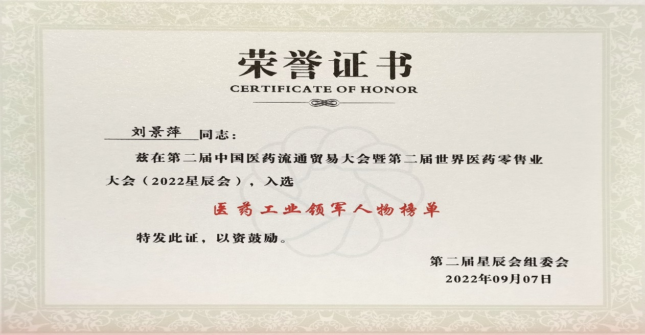 本次星辰会期间,新宝GG斩获颇丰,获得多项行业奖项及荣誉。在开幕式上,刘景萍董事长荣获“医药工业领军人物”称号。